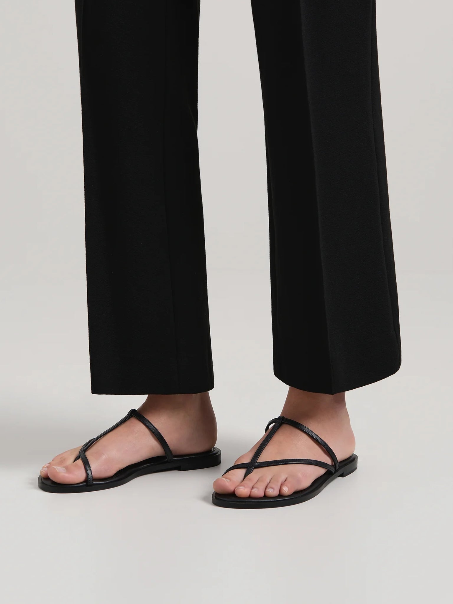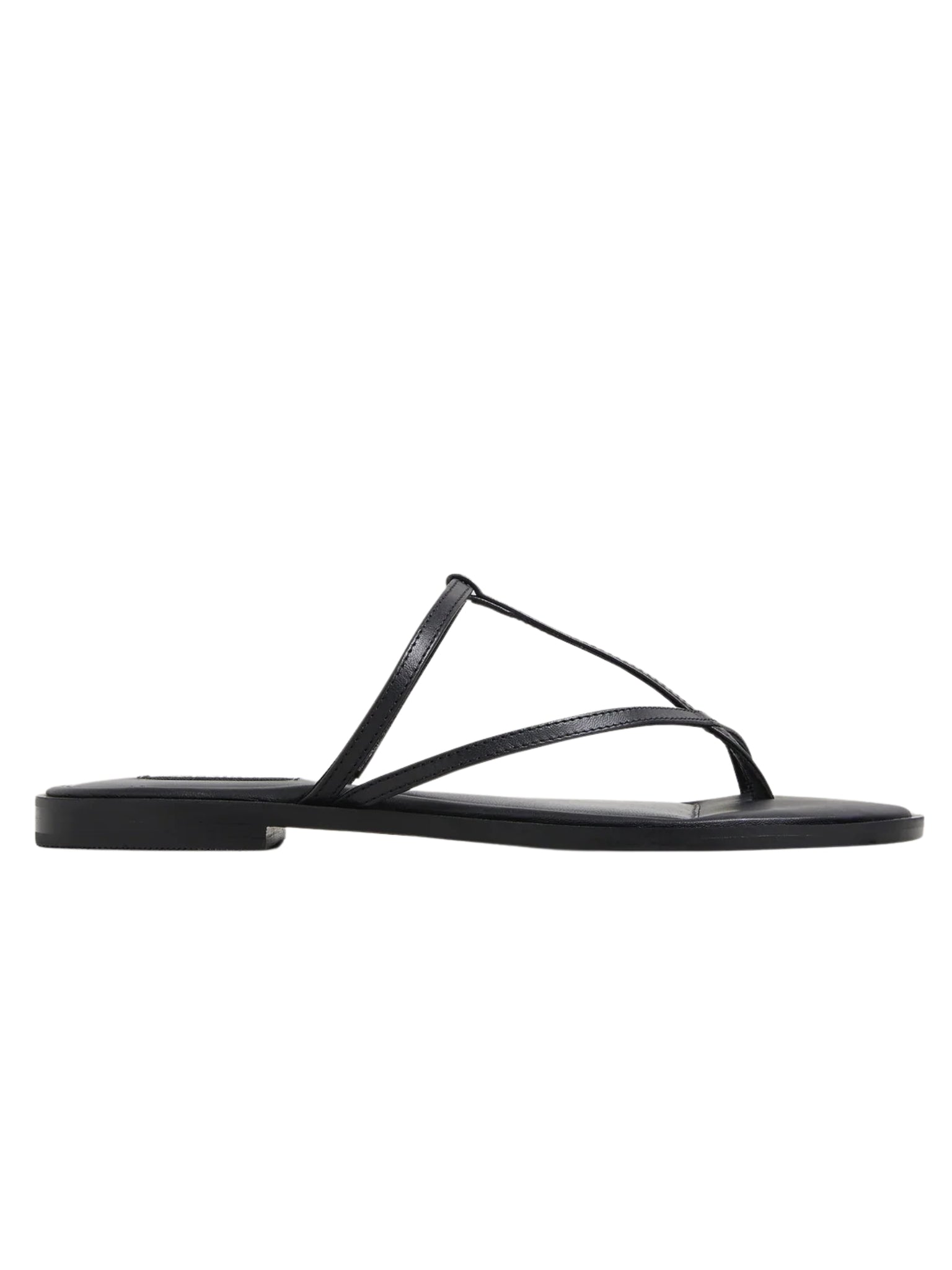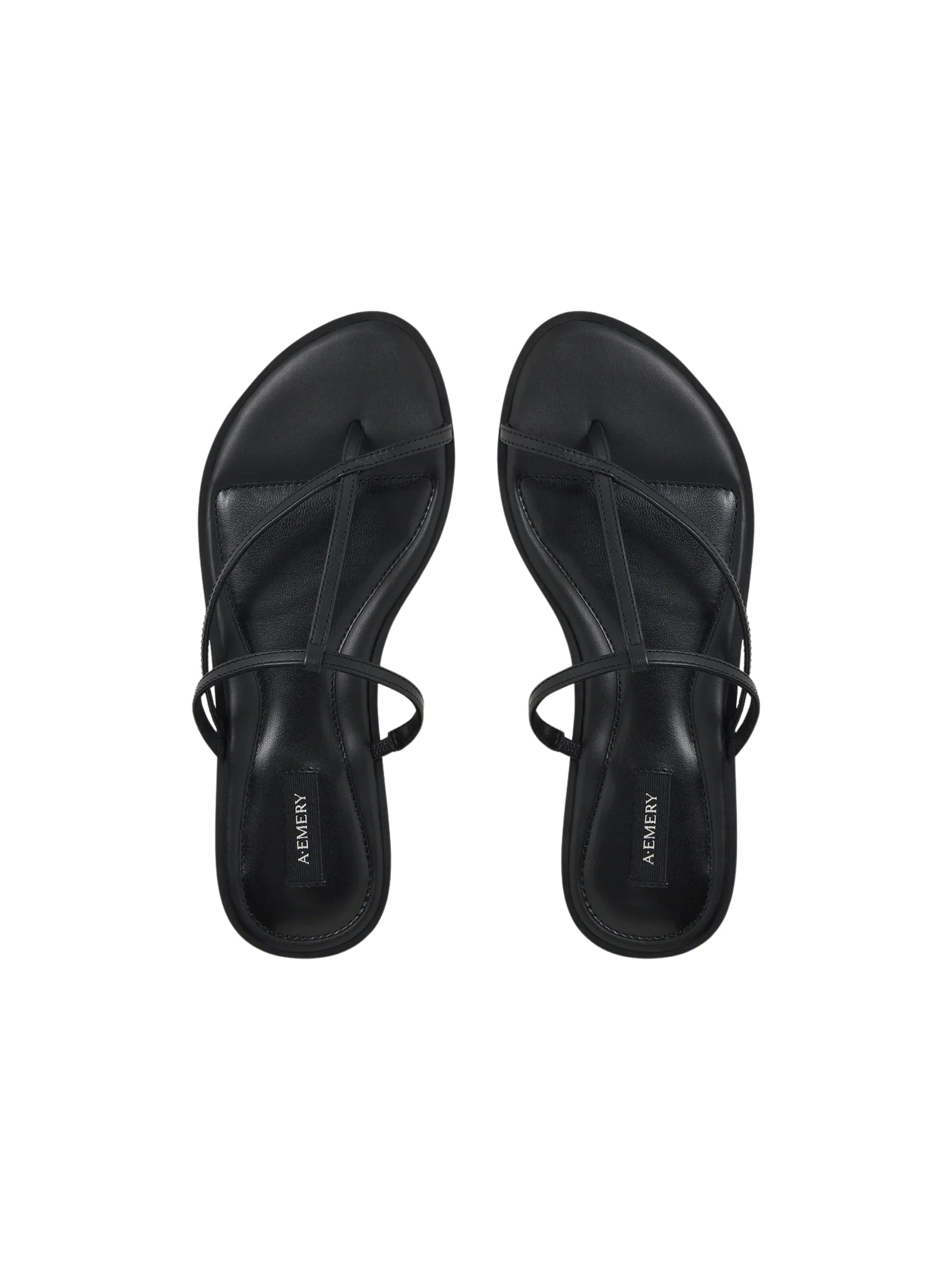 The Cyrus Sandal sits atop an elegant, tapered footbed with slim straps diagonally and horizontally securing the top of the foot.