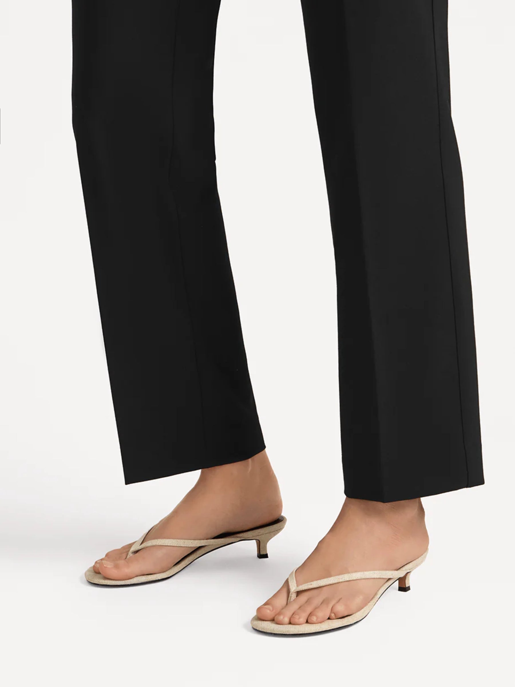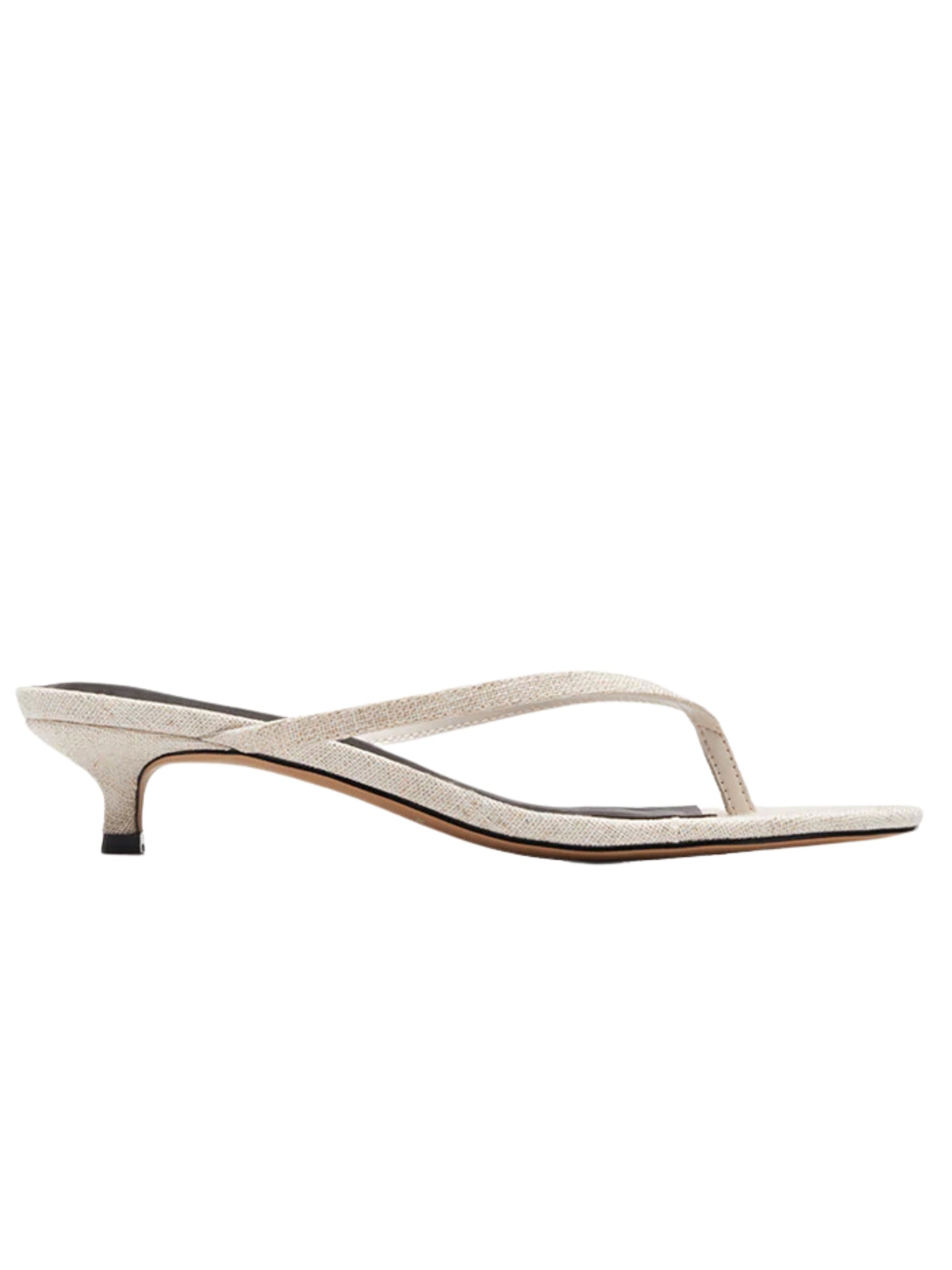 Dia Mini is expertly crafted with our signature modern minimalism in mind. This slip-on mini thong offers luxurious ease of wear in buttery nappa and canvas fabrications. Featuring a low kitten heel and fresh round toe shape, this heel blends classic design with a modern twist, effortlessly elevating any outfit.