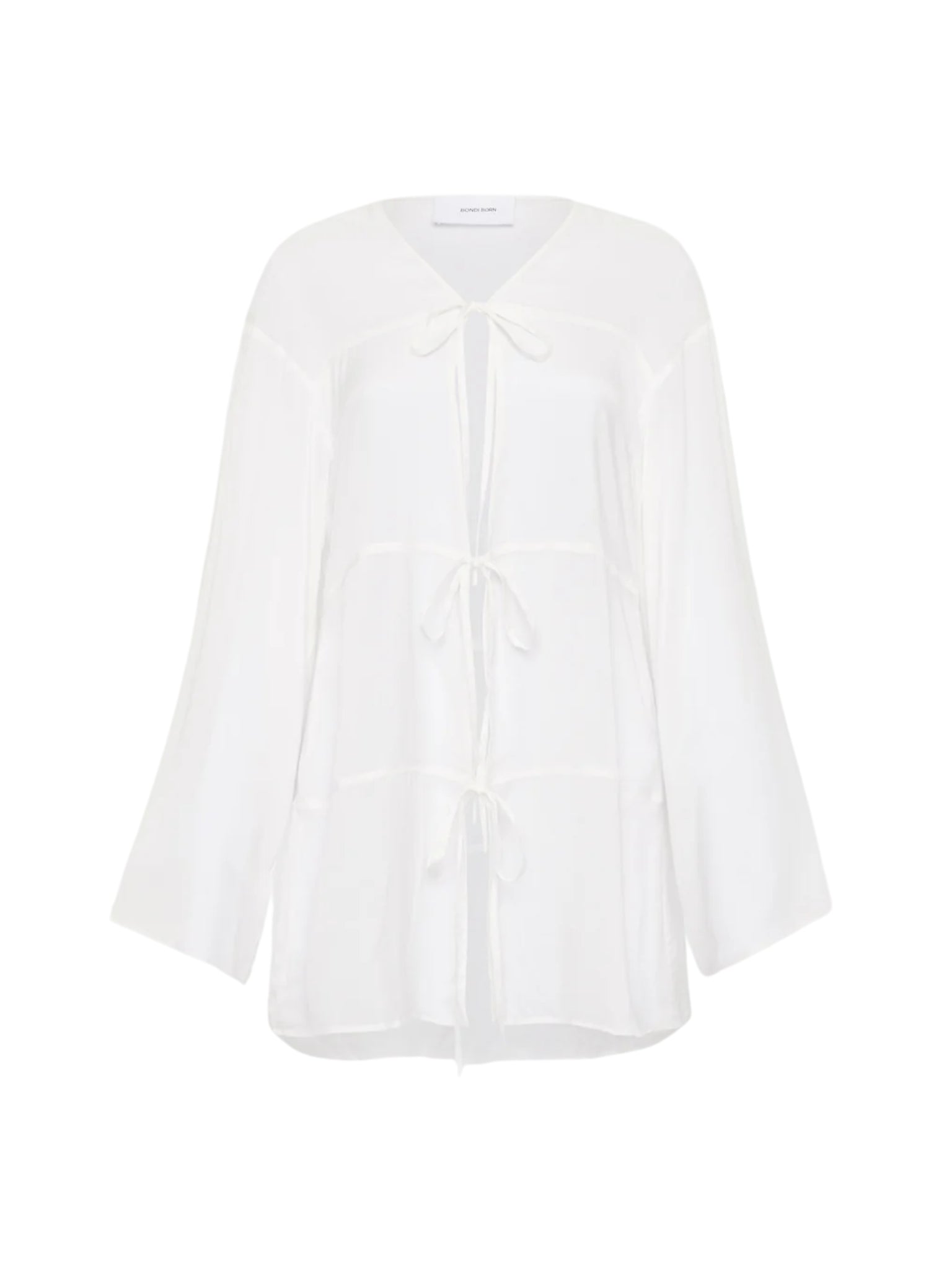 The Cremona Tie-Front Mini Coverup is a chic and easy beach to bar solution. A stylish take on a cover-up, the long-sleeve mini features four horizontal panels with shoestring ties at centre front. Made from a soft, sheer rayon voile, this versatile piece can also be worn over shorts or jeans with a bikini top underneath.