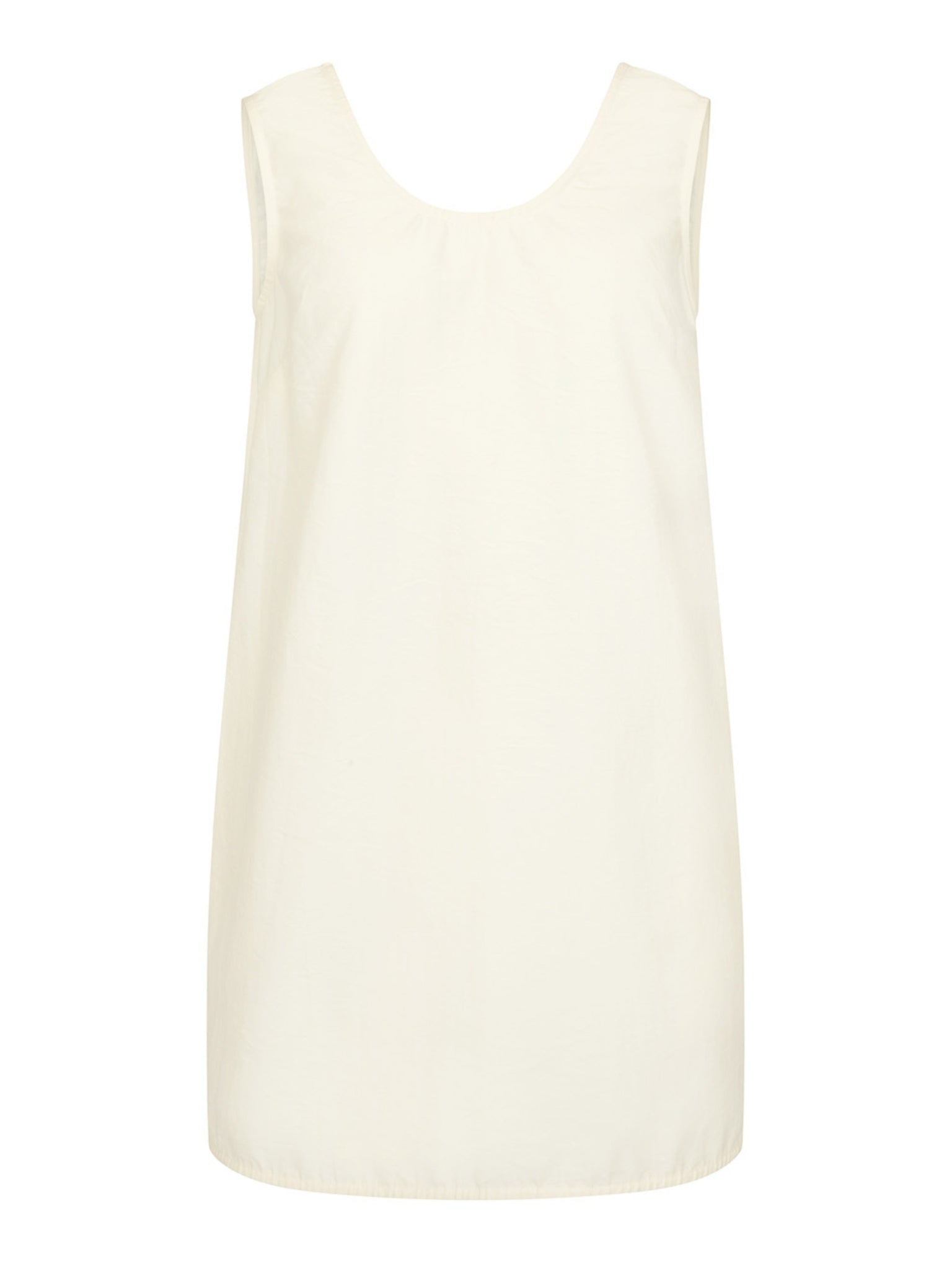 Crafted from cream textured cotton, this sleeveless style features a pared-back silhouette with a subtle cocoon shape that drapes away from the body. Designed for heat and light, it invites the wearer to feel both free and refined. Finished with side pockets for everyday wear. Please note that the hem is 5cm longer than pictured.