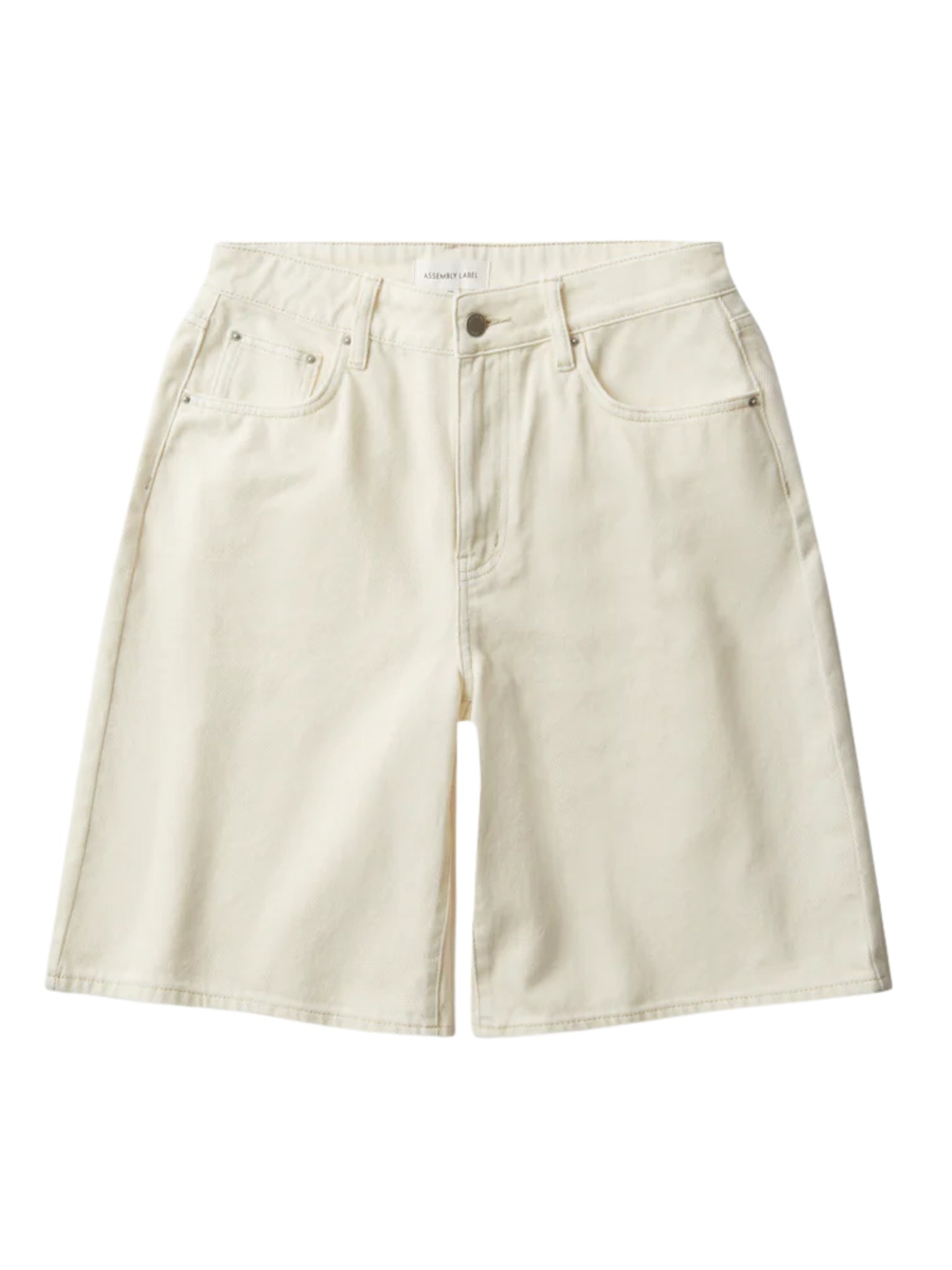 Knee-length Bermuda shorts crafted from a midweight cotton denim. Designed to sit mid-rise, they offer a relaxed fit through the leg.