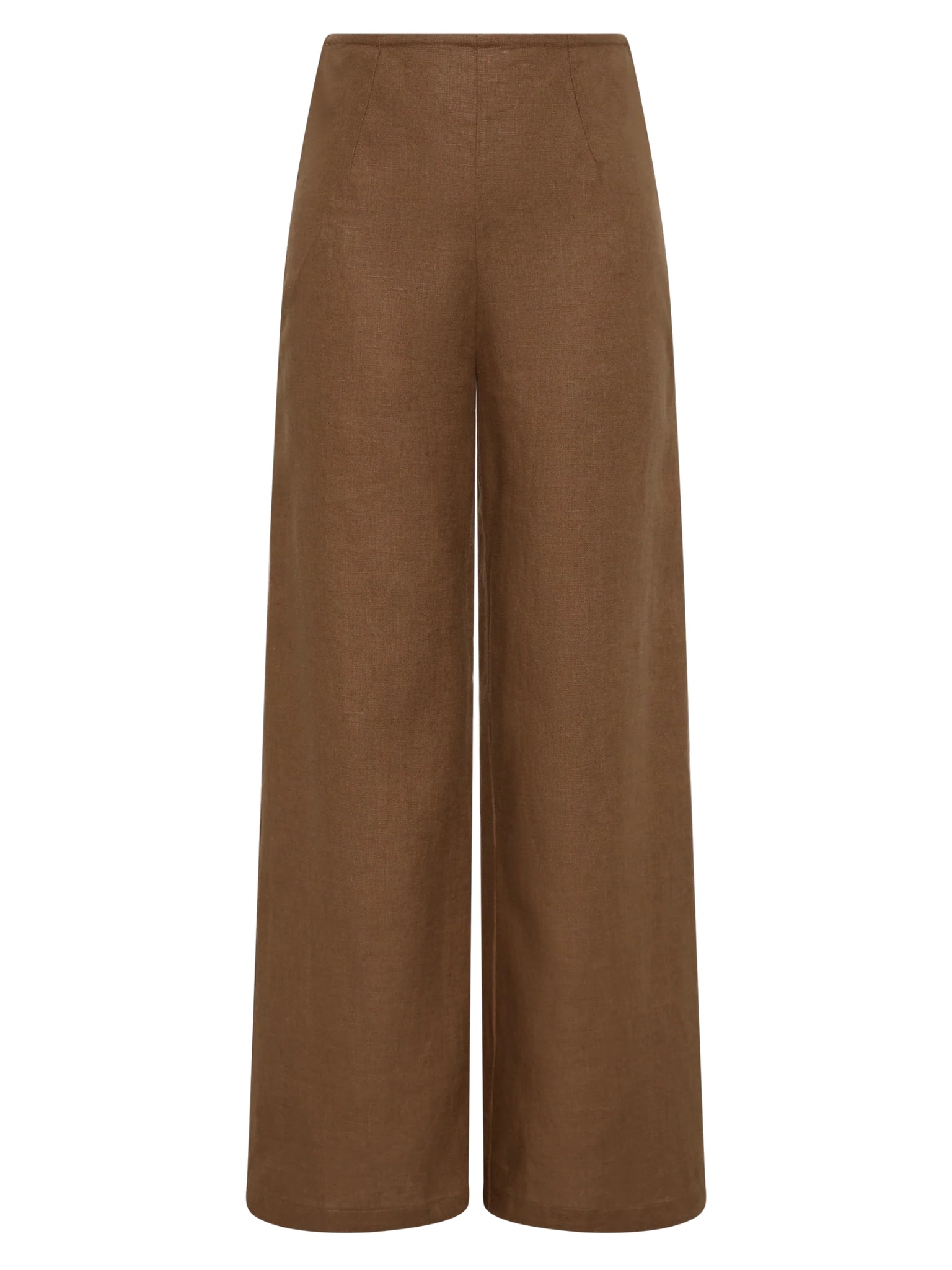 A relaxed high-rise pant that sits up on the waist. Designed from a signature 100% European Flax® linen fabrication in a soft clay brown, they feature a smooth front that are fitted through the waist and hips before flaring into a wide leg silhouette that crops around the ankles. Style with the Syna Top for elevated tonal dressing.